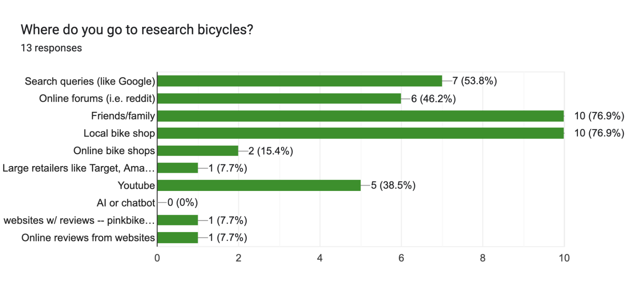In surveys, I discovered that if you’re making a large bike purchase, you go to a local bike shop to get your fitting done by an expert and ride some bikes beforehand.
